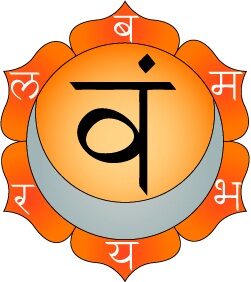 Svadhisthana Chakra is located at the sacral spine, below the navel. Svadhisthana literally means “ones own dwelling place”. Its function is desire, sensuality, procreation. It is also called water chakra or sacral chakra. It corresponds to Bhuvar Loka. The svadisthana Chakra has control over the lower abdomen, bladder, kidneys, etc., in the physical body. Within this Chakra there is a space like a crescent moon or the form of a conch or Kunda flower. The presiding deva is Brahma and Devata is Goddess Rakini. The Bija(seed) of deity Varuna is in this chakra, the seed mantra is at the centre. From the Svadhisthana Chakra six nadis arise which appear like the petals of a lotus, the vibrations produced by these nadis are represented by sanskrit letters. One who has conquered this chakra has perfect control over the water element. He gets many psychic powers, intuitional knowledge. It connects us to others through feeling, attraction, sensation, and movement. It relates to Desire, Creativity, Sensuality. The color of this Chakra is orange. Its celestial body is the moon. Its stones are coral and carnelian. It is depicted as a six-petalled vermilion or orange-red lotus. Svadhisthana is regarded as the substratum or the basis of individual human existence and it is the storehouse of mental impressions or samskaras. It is said that all the karmas, the past lives, the previous experiences, the greater dimensions of human personality that is unconscious, can be symbolized by svadhisthana chakra. Swadhisthana is often regarded as a hindrance in the sense that these karmas lying embedded in the unconscious do not allow the rising kundalini to pass through. After the initial awakening, kundalini returns to dormancy time and time again, solely due to the karmic block at the svadhisthana. These karmas are beyond the range of analysis. When kundalini is residing in svadhisthana chakra, the last vestige of karma is being thrown out and all the negative samskaras express themselves and are expelled.